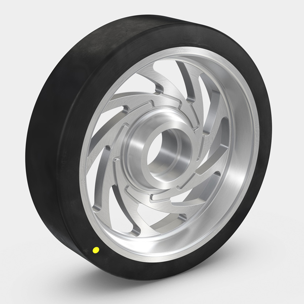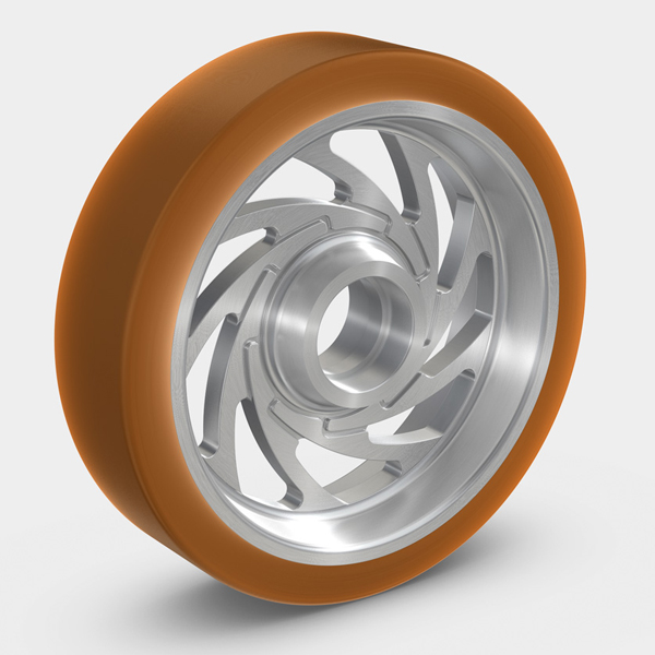 VULKODYN® a highly elastic polyurethane elastomer which we have developed for extremely dynamic applications. The material has excellent properties such as approximately 20% lower rolling resistance, higher load capacity at the same speeds, better driving comfort thanks to good damping, lower risk of flat spots during stoppages, hydrolysis resistance and better traction. VULKODYN® is therefore particularly suited for use at high speeds.